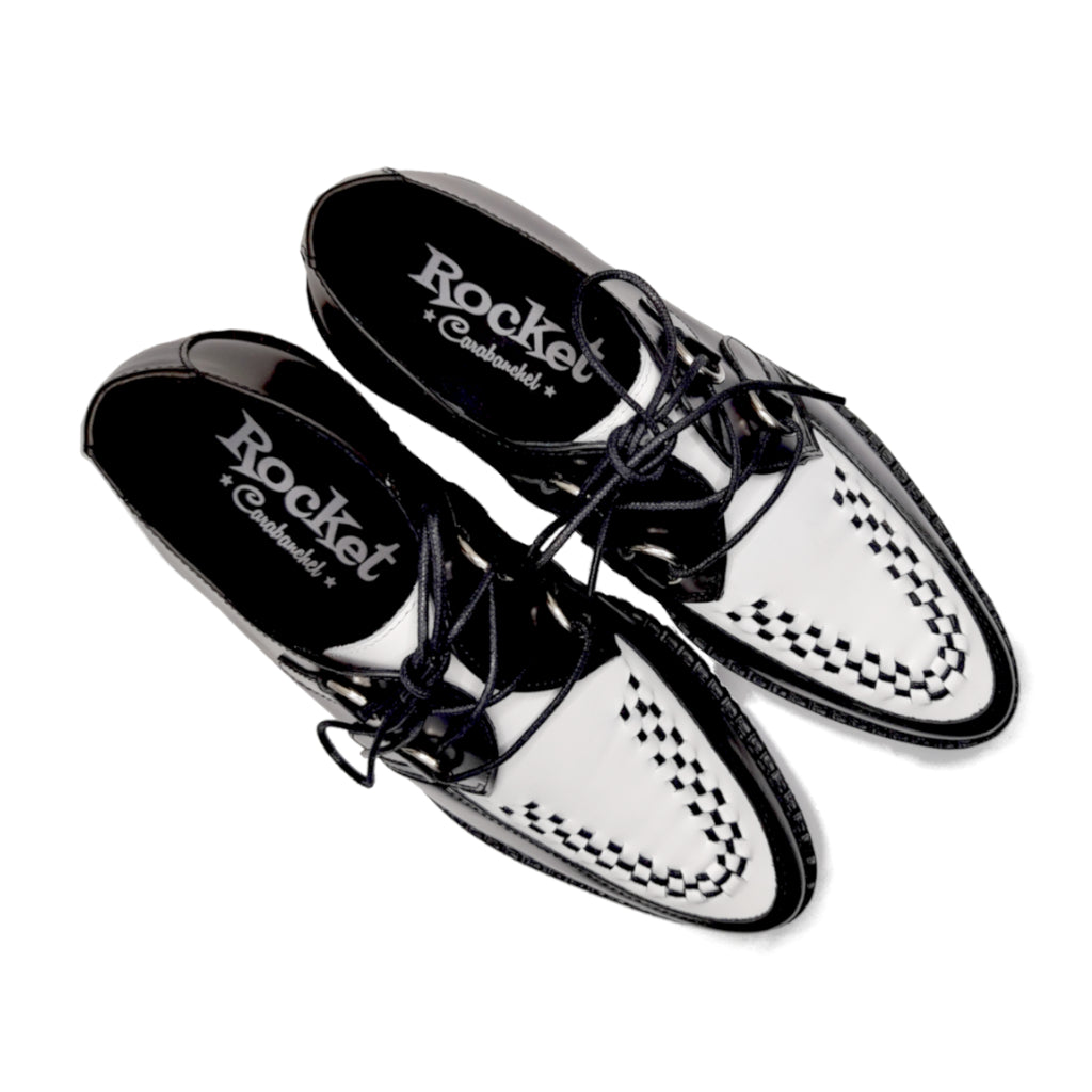 - Piel negra, empeine blanco con entrelazado negro